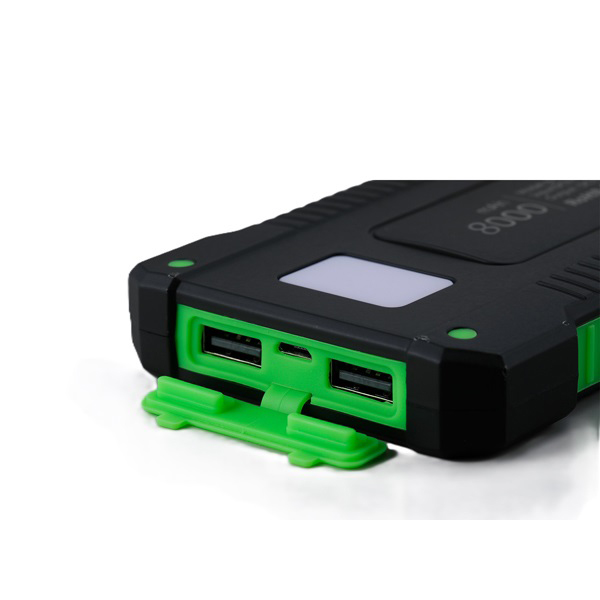 太陽光とUSB両方で充電できるモバイルバッテリー。