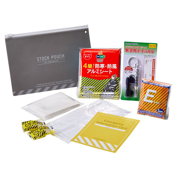 付属品 防災カード・備蓄氷糖(2個)・非常用簡易トイレ・ポケットティッシュ・マスク・ホイッスル・アルミブランケット